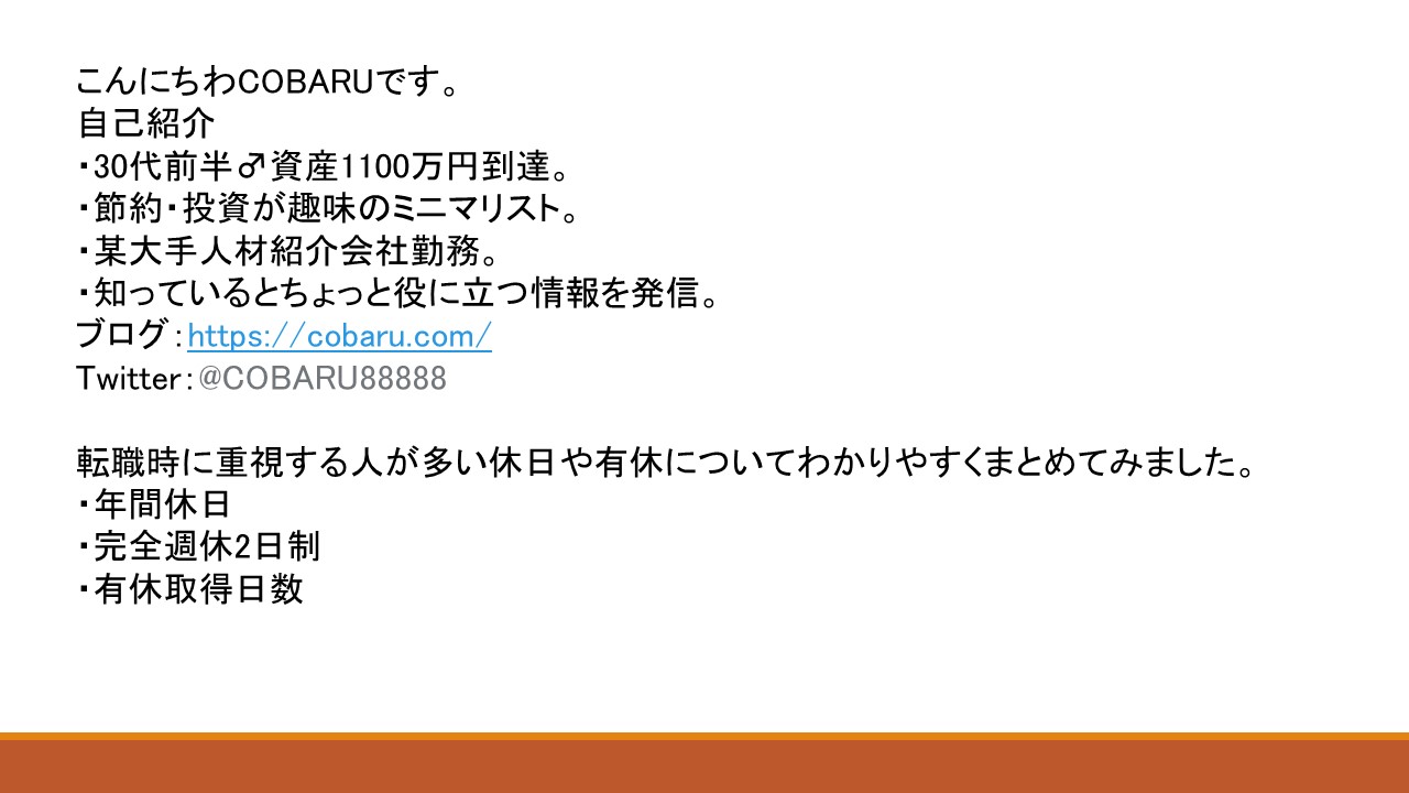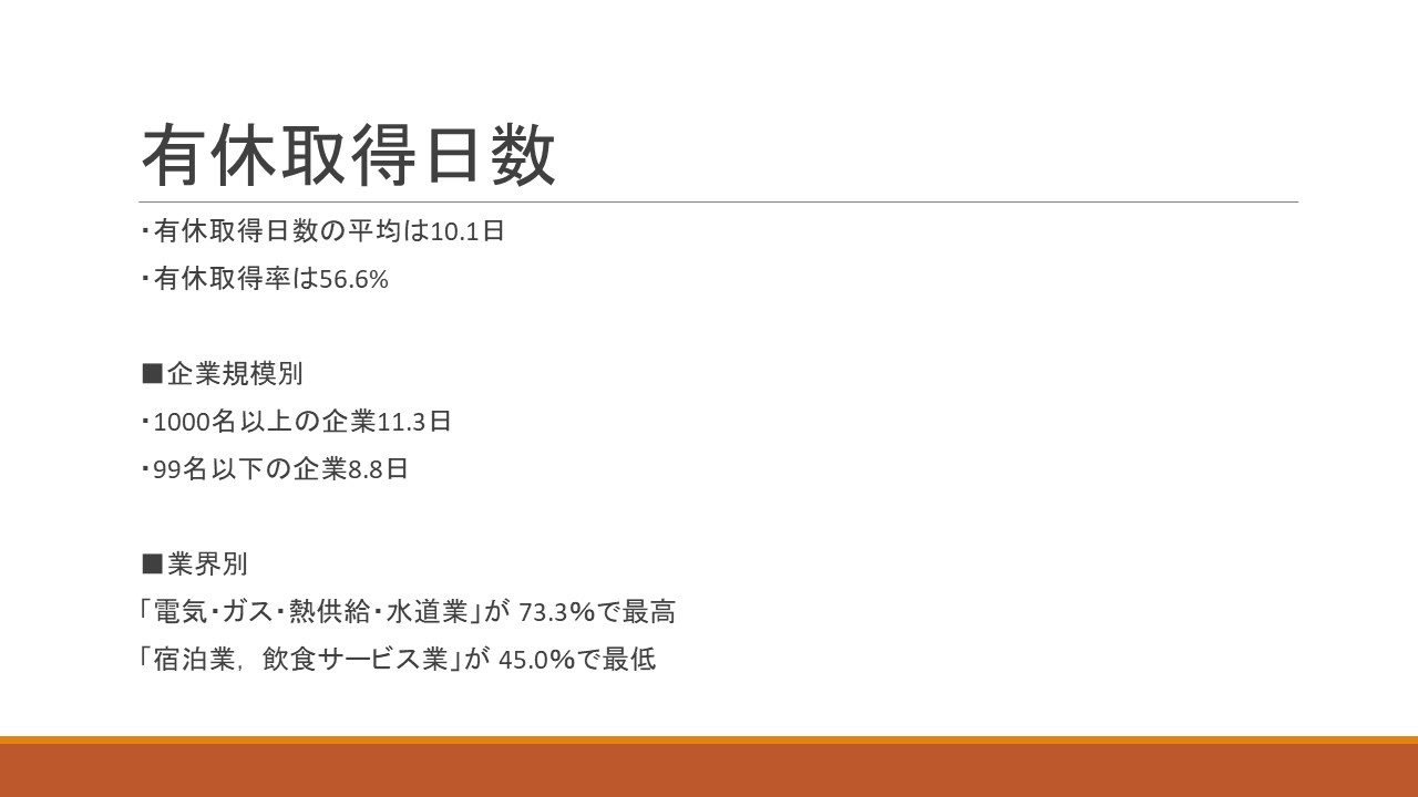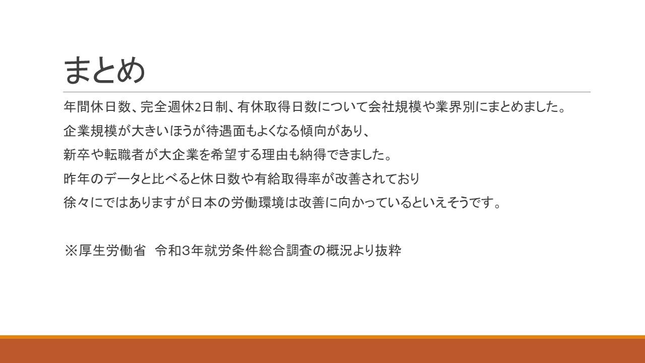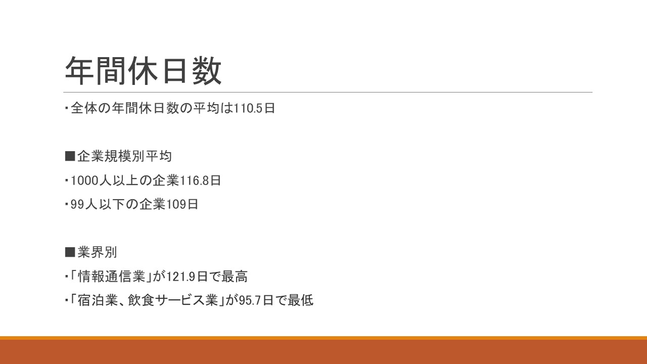 ホーム【仕事・転職】 【転職】あなたの会社はホワイト企業!?年間休日・有休休暇まとめ 2022年4月23日2025年10月4日 関連投稿: 相手に伝えるときに意識すること3選【仕事術】 つい後回しにしてしまう人が行動できるようになる方法 年功序列 VS 成果主義【今の20代・30代が生き残る方法】 メンバーシップ雇用・ジョブ型雇用について解説 コメントを残す コメントをキャンセルメールアドレスが公開されることはありません。 ※ が付いている欄は必須項目ですコメント ※ 名前 ※ メール ※ サイト 次回のコメントで使用するためブラウザーに自分の名前、メールアドレス、サイトを保存する。 上に表示された文字を入力してください。 Δ